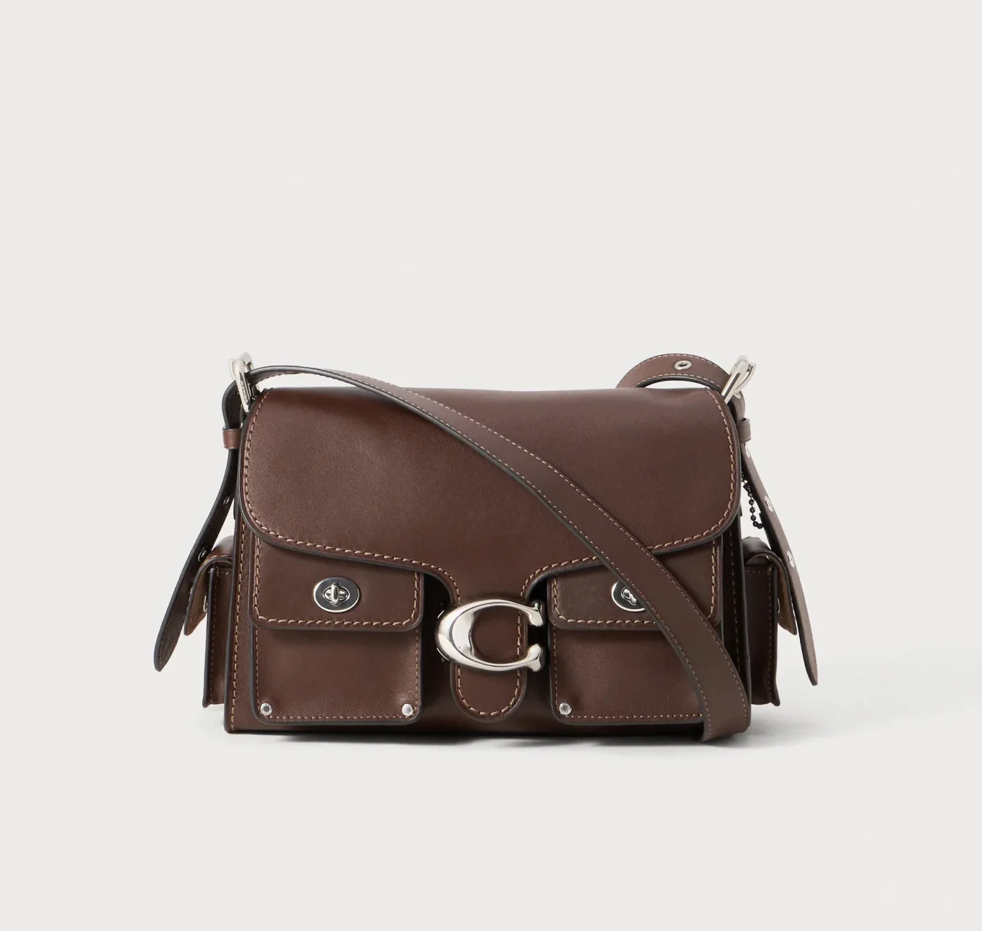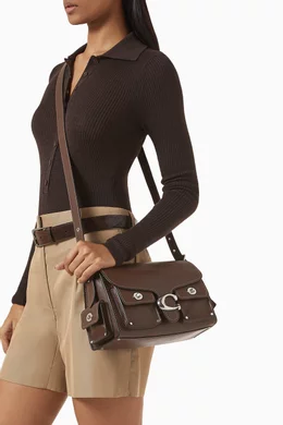 A Soft Tabby reimagina nossa versão estruturada de um design Coach dos anos 70 com um toque descontraído. Finalizada com bolsos cargo detalhados com nossos icônicos fechos turnlock, detalhes polidos e nosso hardware Signature, esta bolsa de ombro em couro natural possui bolsos internos e externos para organizar pequenos acessórios e duas alças para carregar na mão, como uma bolsa de ombro curta ou para usar na transversal.