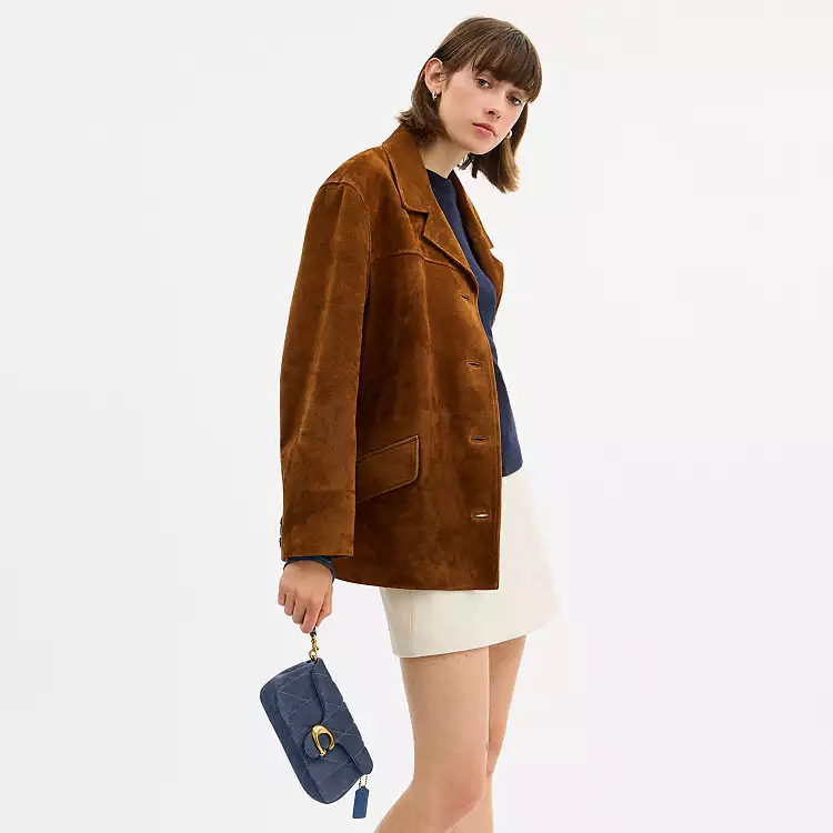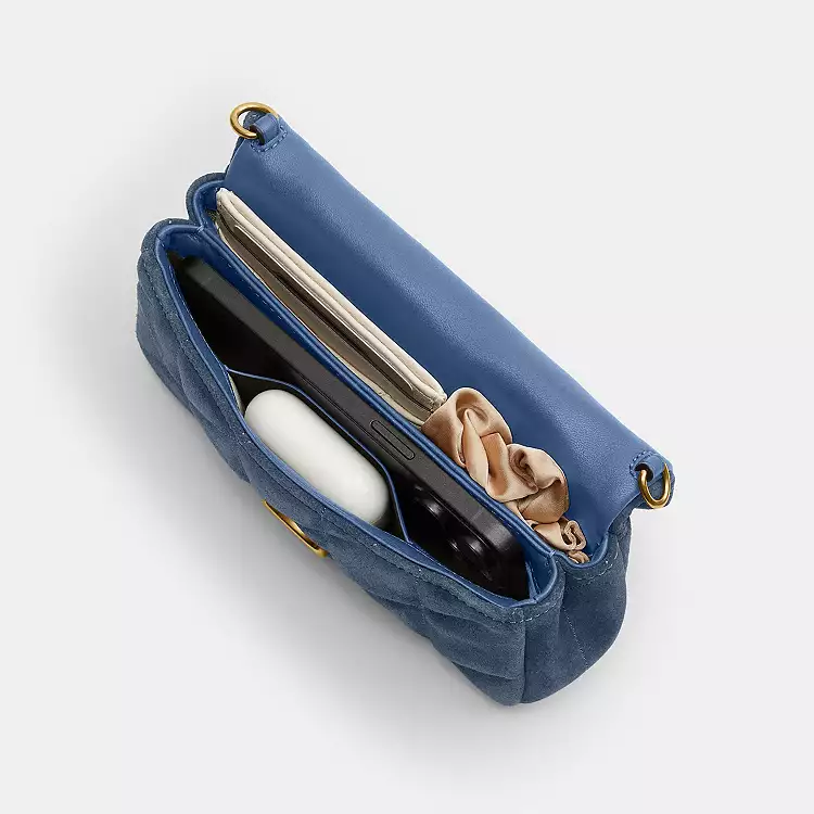 Uma versão moderna de um design clássico da Coach dos anos 70, nossa bolsa transversal estruturada Tabby Chain 19 é confeccionada em camurça aveludada acolchoada. Com acabamento em ferragens exclusivas, este modelo organizado de dois compartimentos tem o tamanho perfeito para cartões, dinheiro e celular, além de um prático bolso externo para fácil acesso a itens essenciais. Versátil, pode ser usada como carteira de pulso, carteira de mão ou transversal com a elegante alça de corrente, tornando-a a escolha perfeita tanto para looks formais quanto casuais.