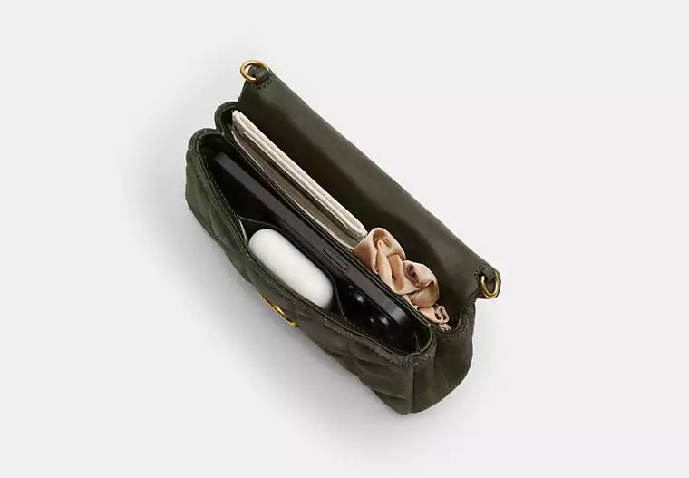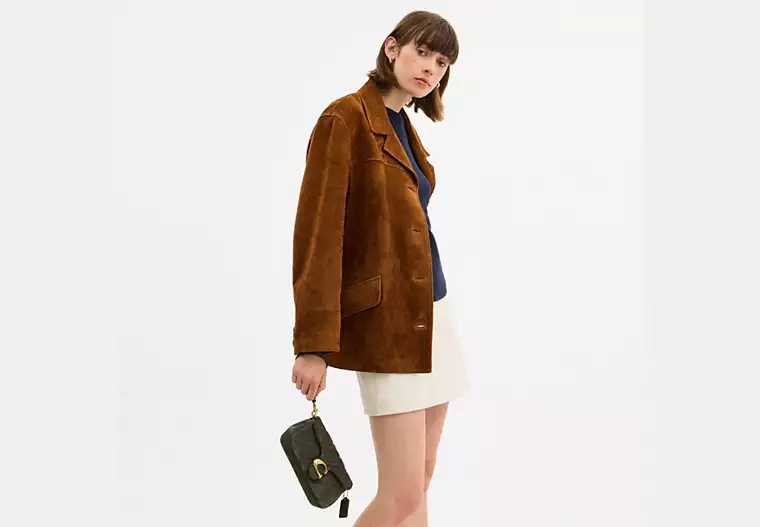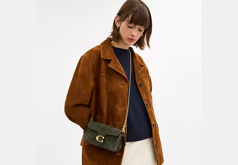 Uma versão moderna de um design clássico da Coach dos anos 70, nossa bolsa transversal estruturada Tabby Chain 19 é confeccionada em camurça aveludada acolchoada. Com acabamento em ferragens exclusivas, este modelo organizado de dois compartimentos tem o tamanho perfeito para cartões, dinheiro e celular, além de um prático bolso externo para fácil acesso a itens essenciais. Versátil, pode ser usada como carteira de pulso, carteira de mão ou transversal com a elegante alça de corrente, tornando-a a escolha perfeita tanto para looks formais quanto casuais.