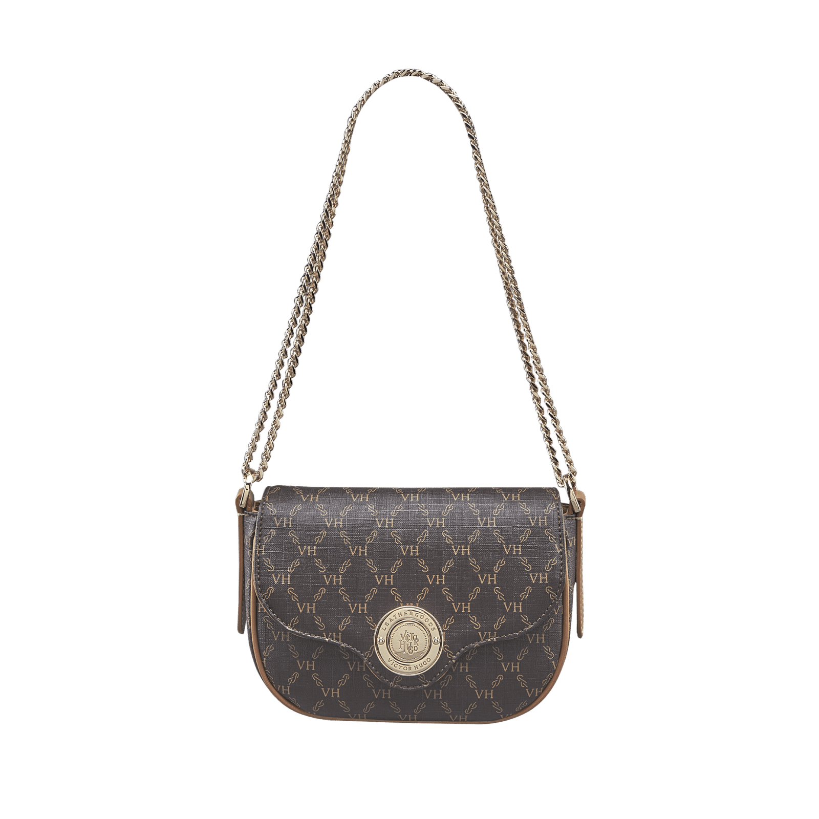 A Bolsa Baby Lock Messenger Elos VH, apresentada agora na versão menor (Baby), com aba arredondada com curvas delicadas é pontuada pelo fecho Medallion VH dourado. As alças de corrente dourada, permitem o uso com duas alças, ou deslizando uma das alças e usando na versão mais longa. Na versão em canvas, símbolo clássico da VICTOR HUGO, o icônico monograma traduz a tradição e elegância da marca. O detalhe de pesponto em Couro é totalmente manual, realçando a qualidade e extenso trabalho artesanal, símbolo do DNA da marca.