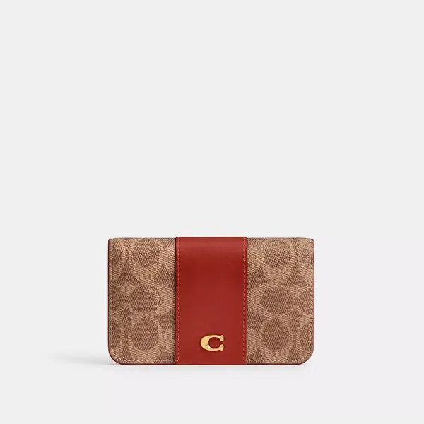 Detalhado com nosso hardware Signature, este sofisticado porta-cartões Slim é excelente em organização. Protegido por um fecho de pressão, o design duplo apresenta vários compartimentos para cartões, bolsos internos para dinheiro ou recibos e um bolso com zíper para moedas ou pequenos acessórios. Fabricado em couro refinado e nosso Canvas Signature, possui acabamento com um bolso externo para facilitar o acesso aos itens.