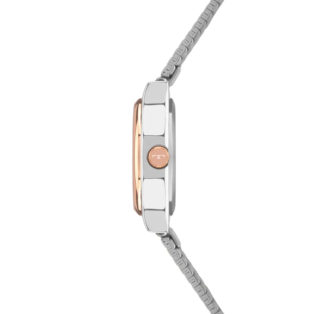 O novo modelo da linha Style resgata o tradicional design vintage. A pulseira diferenciada, construída em nove links, é o grande destaque, reforçando a elegância da peça. O mostrador texturizado de fácil leitura complementa o visual, em uma proposta que une charme e praticidade. Além disso, o relógio apresenta resistência à água de 50 metros.
